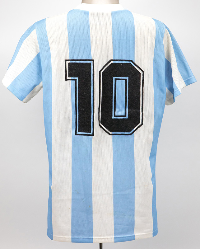 Maradona - Trikot 1990 | Schönes Retrotrikot der argentinischen Natinonalmannschaft von der Fußball-Weltmeisterschaft 1986 mit der Rückennummer "10". Hersteller: Le Coqsportif; ca. 1990. Mit Originalsignatur von Diego Maradona (1960-2020)!!!