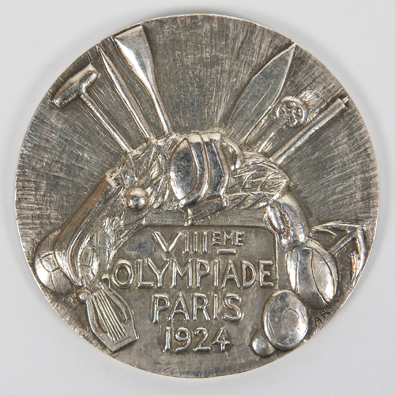 Siegermedaille 1924 | Silbermedaille der VIII. Olympische Spiele 1924 von Paris für einen 2.Platz. 5,5 cm Gewicht 79 Gramm. Silber, (Randpunze "2 Argent").