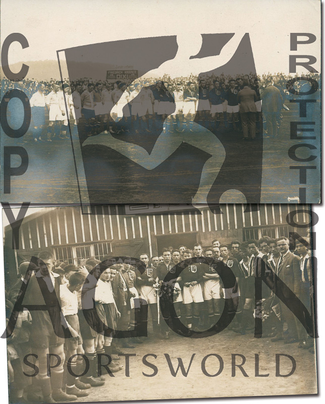 Bela Guttmann war bei beiden Spielen dabei! Sehr seltene Postkarte. -Mit Papierrückständen auf der Rückseite. Zustand: A-