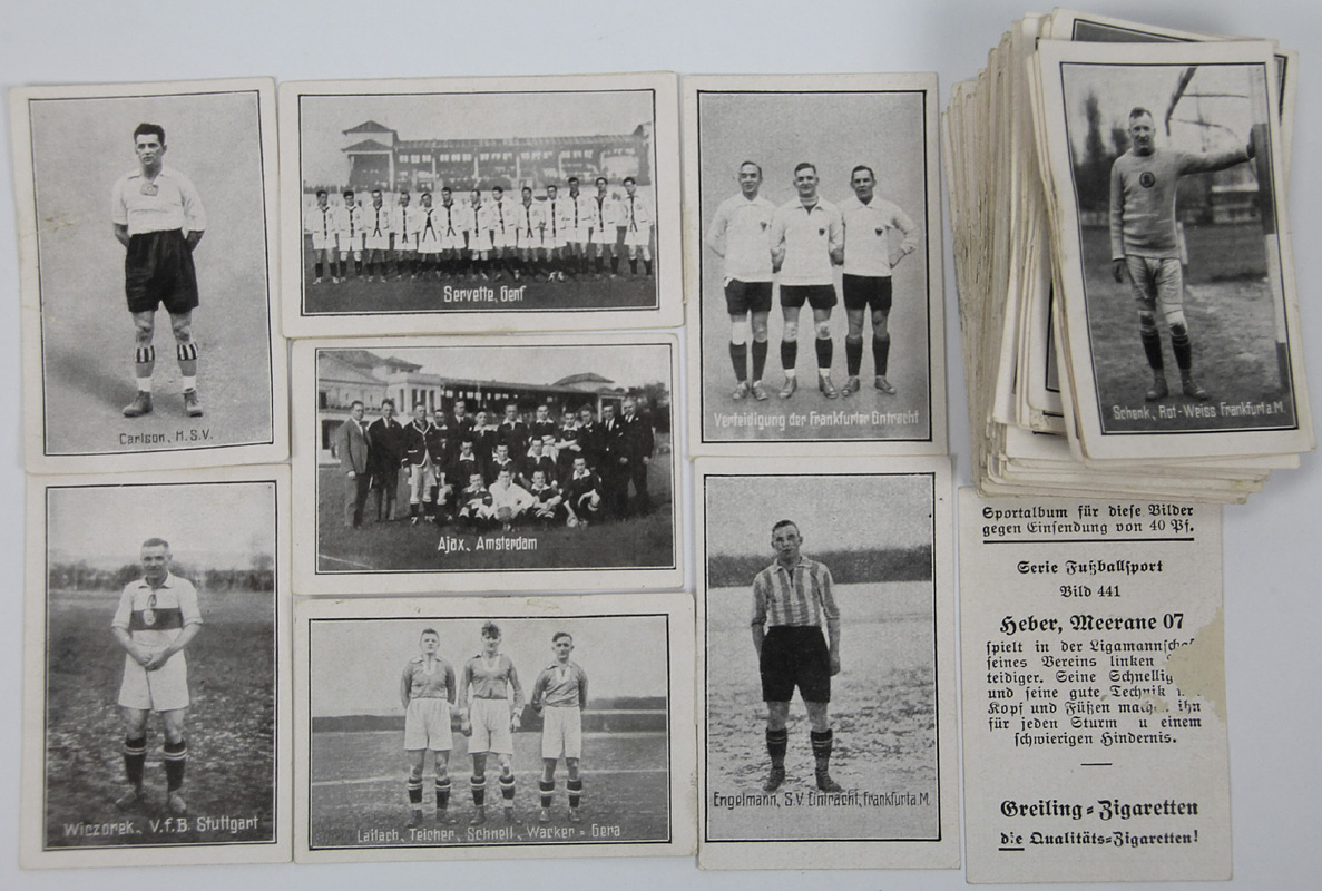 Sorry, no english description is available. ... 152 Football Stickers: Greiling 1928 - Condition: B-C.....Zustand der Bilder unterschiedlich. Mit geringen Kleberresten auf der Rückseite. Das Konvolut wurde nicht kollationiert.
