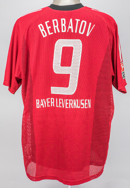 Sorry, no english description is available. ... match worn football shirt Bayer Leverkusen 2003 - Condition: A-.....Trikot kurzarm mit Innenhemd (Double Layer); Größe XL, Vereins-Logo und adidas-Logo gummiert; Werbeaufdruck 'RWE' gummiert; Spielername, Rückennummer und Schriftzug 'Bayer Leverkusen gummiert; Innenhemd aus Netzstoff; Netzstoff seitlich eingelassen; mit BL Patch; Trikot hat Gebrauchsspuren (Fehlstellen in der Rückennummer und im Namen, Fäden gezogen); adidas climacool. Der Einlieferer hat dieses trikot direkt von Berbatow erhalten.