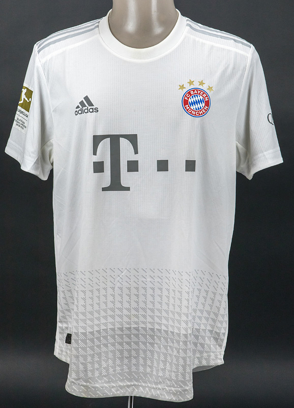 match worn football shirt Bayern Munich 2019/2020 - Original match-worn FC Bayern Munich shirt with the number 8. Worn by Javi Martinez on December 18, 2019, in a Bundesliga match against SC Freiburg. Freiburg - Bayern 1:3. Martinez is the 2010 World Cup winner and the 2012 European Championship winner. Status: AAB --Away short-sleeved jersey; size 8; gummed club logo, 4 championship stars, and adidas logo; advertising print "-T---"; gummed player name, number, and 'Bayern München' lettering; gummed 'Mia san mia' lettering on the back of the collar; with 2018/2019 German Champion patch and Qatar Airways patch; adidas Climachill. Jersey comes from a Bayern Munich employee. Condition: A