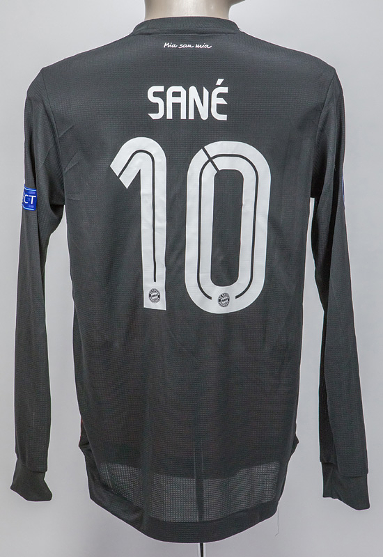 match worn football shirt Bayern Munich 2020/2021 - Original match-worn FC Bayern Munich shirt with the number 10. Worn by Leroy Sane on December 1, 2020, in a UEFA Champions League group stage match against Atletico Madrid. Atletico - Bayern 1:1. Sane has been capped 69 times by Germany. Status: AAB --Long-sleeved jersey; size 5; gummed club logo, 4 championship stars, and adidas logo; advertising print "-T---"; gummed player name and number; gummed "Mia san mia" lettering on the back of the collar; with CL 2020 Trophy patch, CL 6 Trophy patch, and UEFA Respect patch; adidas Heat.RDY. --Comes from the collection of a Bayern Munich employee Condition: A-
