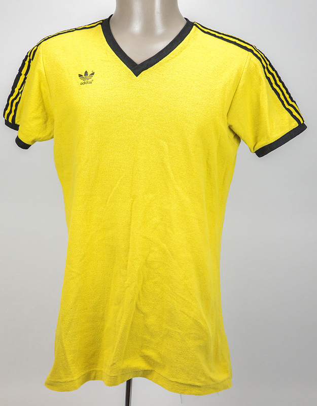 Match worn Footballshirt Borussia Dortmund 1968 - Original match-issued Borussia Dortmund player jersey without a number. Designed for the 1972-1976 Bundesliga season, it comes with the matching Borussia shorts. Status: ACA --Yellow short-sleeved cotton jersey with terry cloth. Thinly flocked Adidas logo. Sewn-on black and yellow Adidas stripes. Size 7/8. Black shorts with black and yellow sewn-on Adidas stripes. Size 7. Printed Adidas logo. --Jersey comes directly from the Werner Weist collection (1949-2019) - Borussia Dortmund 1968-1971 (72/34), Werder Bremen 1971-1977 (145/33), Stuttgarter Kickers (1977-1978; 10/1); 3x DFB U-23 1970 + 1971). The buyer will receive a certificate of authenticity and confirmation from the Weist family regarding the origin of the items. Condition: B