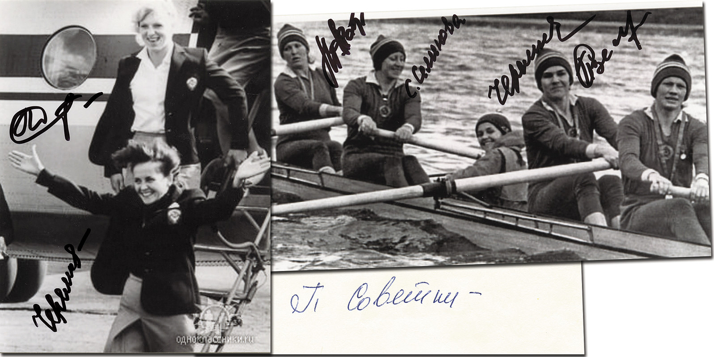 Sorry, no english description is available. ... Olympic Games 1980 Autograph rowing USSR - Condition: A-.....Selten!! Mannschaftsfoto von der Ruder-Weltmeisterschaft 1979.