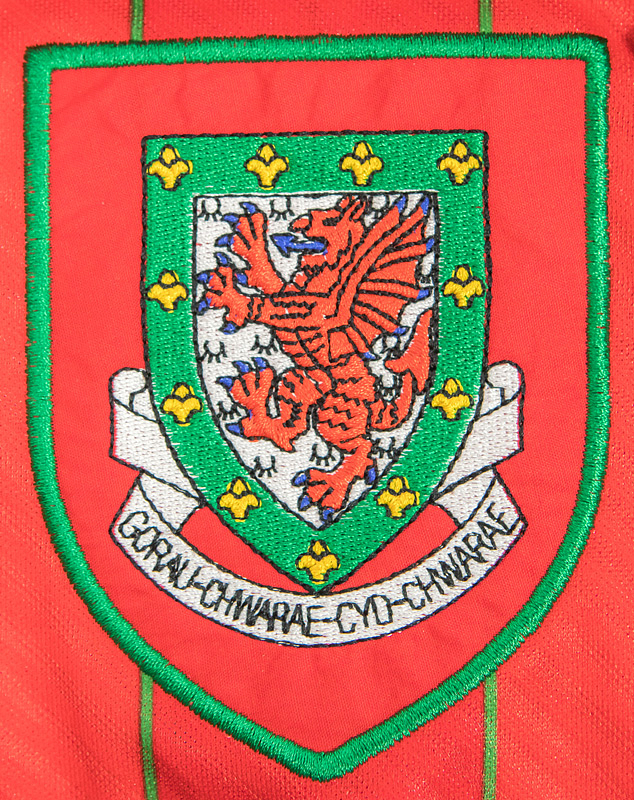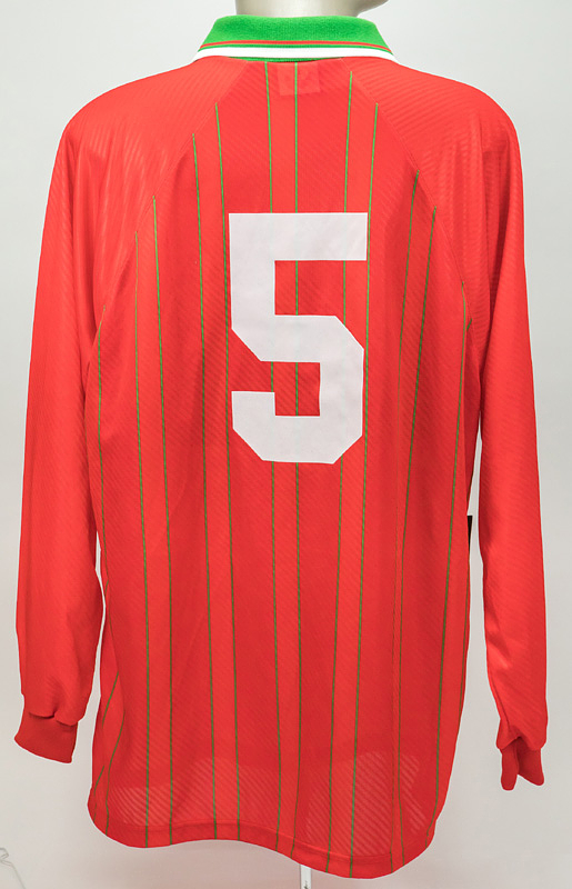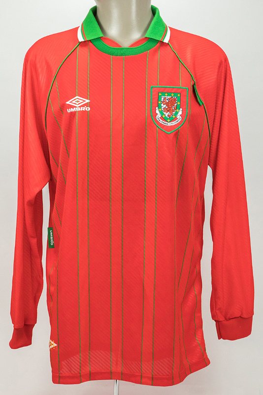 UEFA EURO 1996 match worn football shirt Wales - Original match-worn Wales shirt with the number 5. Worn by Andy Melville in a 1996 European Football Championship qualifying match in England. Swap kit. Status: ABB --Long-sleeved jersey; size XL; embroidered federation logo and umbro logo; flocked back number; with Wales and umbro tag; umbro. From the estate of a DFB official. Condition: A-