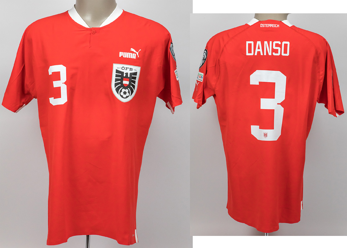 Sorry, no english description is available. ... UEFA Euro 2024 match worn football shirt Austria - Condition: A.....Trikot kurzarm mit Knopfleiste; Größe L; Verbands-Logo und Puma-Logos gummiert; Spielername und Rückennummer (vorn und hinten) gummiert; Schriftzug 'Österreich' auf Kragenrückseite gummiert; mit UEFA Euro Trophy Logo Patch, UEFA Foundation for children Patch und UEFA Euro Qualifiers Patch; Puma ultraWeave. Trikot kommt von einem Mitarbeiter des österreichischen Fußballverbandes.
