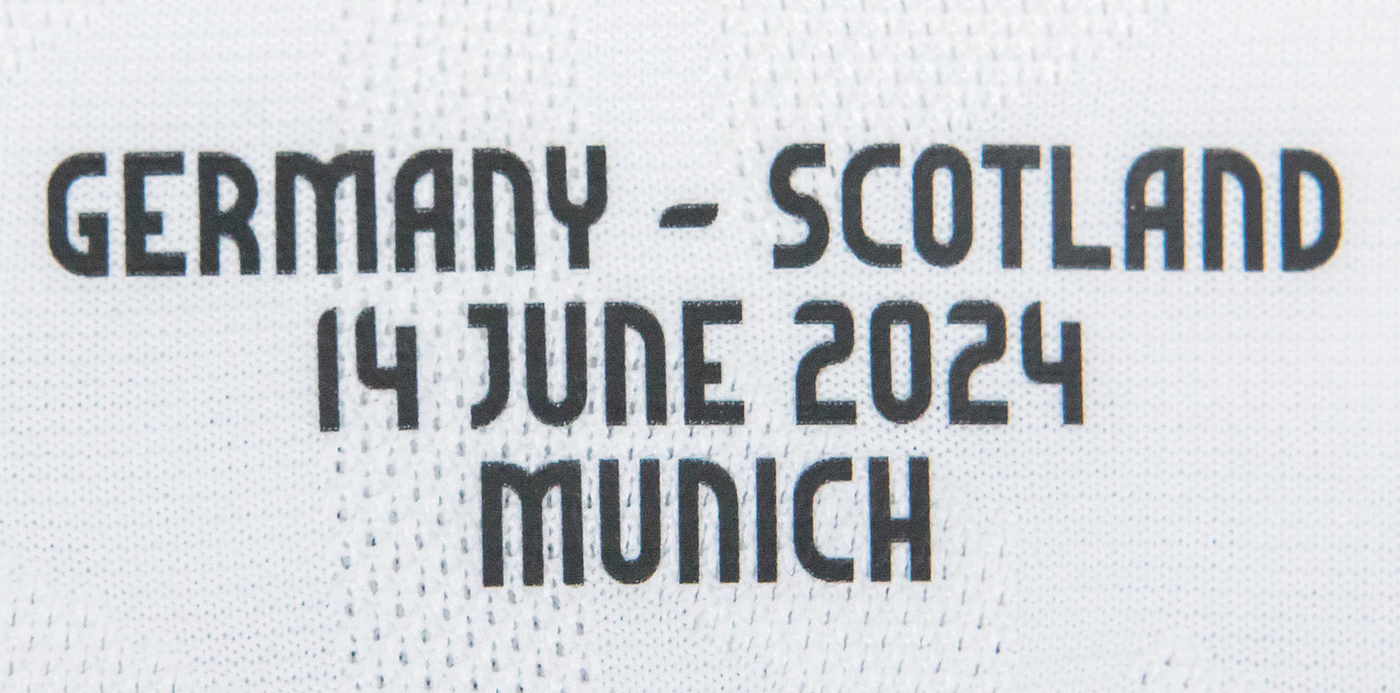 UEFA Euro 2024 match worn football shirt Germany - Original match-worn/issued Germany jersey with the number 7. Worn by Kai Havertz on June 14, 2024, in a group match of the European Football Championship against Scotland. Germany - Scotland 5:1. Status: AAB --Long-sleeved jersey; size M; DFB logo, 4 World Cup stars, and adidas logo rubberized; match details, player name, and number (front and back) rubberized; 'Deutschland' lettering rubberized on the back of the collar; jersey with UEFA Euro 2024 Trophy patch and UEFA Foundation for Children patch; adidas Heat.Rdy. Jersey comes from a DFB employee. Condition: A