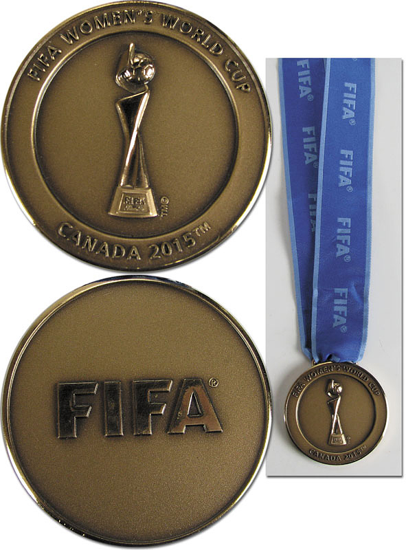 Winner medal FIFA Womens World Cup 2015 Canada - FIFA Women´s World Cup Canada 2015. For the 3rp place which was won by England. Bronze, 5 cm with original silk ribbon. The match for the third place was England - Germany (1:0). English players received this medal after the match. Condition: A