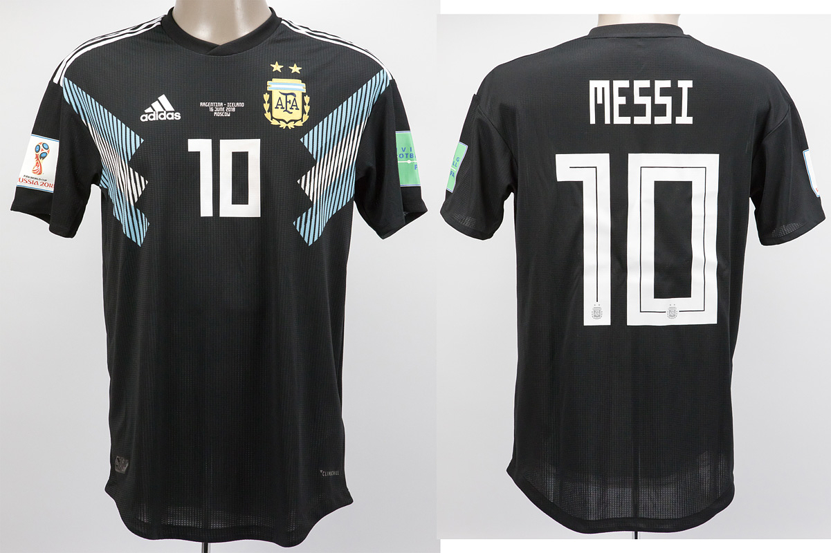 World Cup 2018 match issued Footb shirt Argentina - Original match worn / issued Argentina player shirt with the number 10 worn by Lionel Messi on 16 June 2018 for the group stage match of the 2018 Football World Cup against Iceland (1:1). Messi is a multiple World Footballer and World Champion in 2022. Status: AAC. --Short-sleeved shirt; size 6; association logo, 2 world champion stars thickly rubberized; adidas logo and match details rubberized; player name and shirt number (front and back) rubberized; with FIFA World Cup Russia 2018 patch and FIFA Living Football patch; adidas climachill. Messi plays 90 minutes. The shirt is probably just prepared. Condition: A