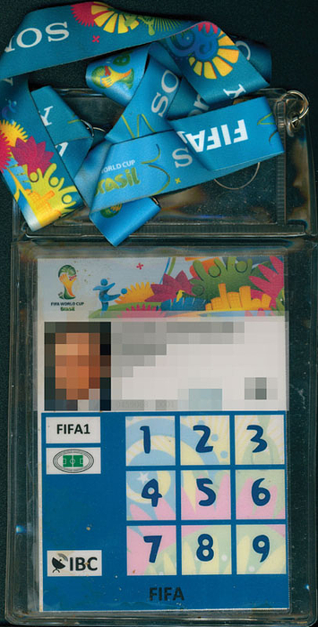 Official 2014 FIFA World Cup ID for a high-ranking FIFA nad German FA official. Includes photo and original lanyard! 15x12 cm Condition: A.