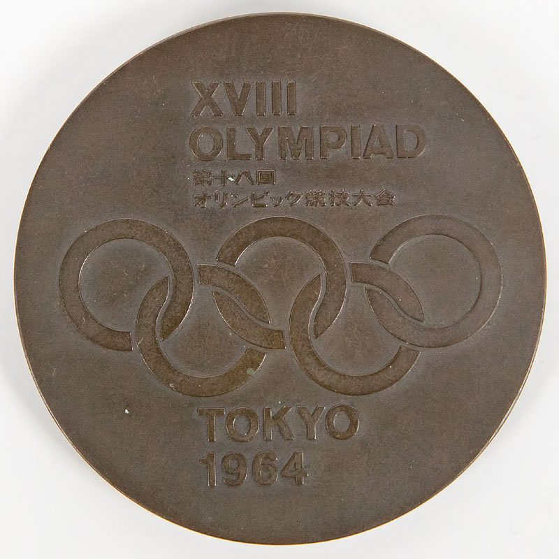 Participation medal Olympic Games 1964 Tokio. Bronce by Okamoto/Tanaka.6,1 cm. In original wooden presentationcase. Medal EF. Box with signs of usage-- Condition: A-