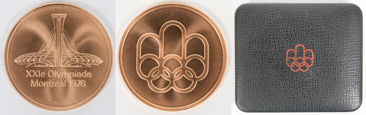 Olympic Games Montreal 1976. Participant's Medal 1976. 21st Olympiad in Montreal 1976. Bronze. In original presentation case. Size 4.5 cm, medal in Mint condition I. Condition: A-