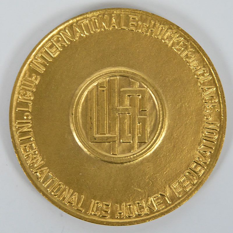 Gold medal from the 1962 Ice Hockey World Championships with the inscription "Championnat du Monde. World Championship 1962". Awarded to Sweden for the world championship title. Manufacturer: "G.Berad". Bronze, gold-plated, 6 cm --Approximately 35 medals were issued. Excellent (EF). -- From the collection of a former Swiss ice hockey club president, who collected these medals between approximately 1964 and 1980. Condition: A
