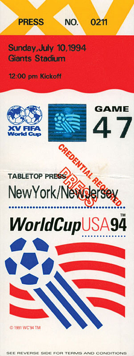 World Cup 1994. Ticket Germany v Bulgaria July 10, 1994 in New York. Size 17x6.7 cm. --bent in the middle Condition: B+