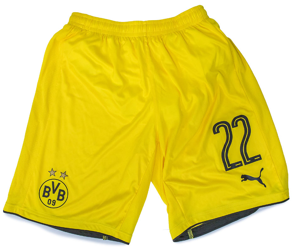 Sorry, no english description is available. ... Condition: A.....Trikot kurzarm; Größe 44, Vereins-Logo, 2 Meistersterne und Puma Logos gummiert, Werbeaufdruck 'evonik' gummiert; Schriftzug 'BVB' auf Kragenrückseite gummiert; Spielername, Rückennummer und Schriftzug 'Dortmund' gummiert; mit BL Patch und Opel-Logo Patch; Puma DryCell; Spieler-Hose kurz mit Innenhose; Größe 48; Vereins-Logo, 2 Meistersterne und Puma Logo gummiert; Puma DryCell.
