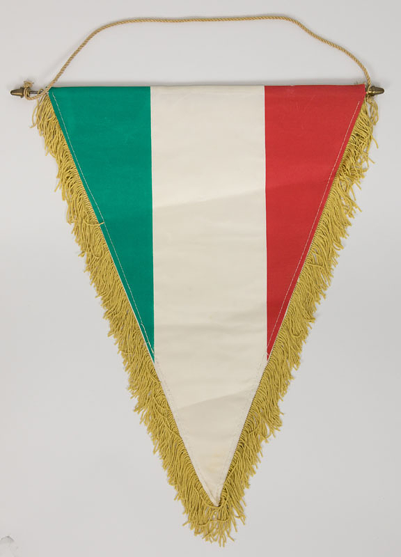Original Juventus Turin match pennant with embroidered lettering "Coppa Campioni 1984/85 Juventus F.C. (Turin) v Grasshoppers Club Zürich Torino 24 / 10 / 1984" (2-0) and embroidered club logo. Reverse side in Italian national colors. Linen pennant with silk fringes. Metal pole. 42 x 32 cm --Juventus Turin won the European Cup in the 1984/1985 season! The consignor received this pennant from a former Grasshoppers Zurich official! Condition: A