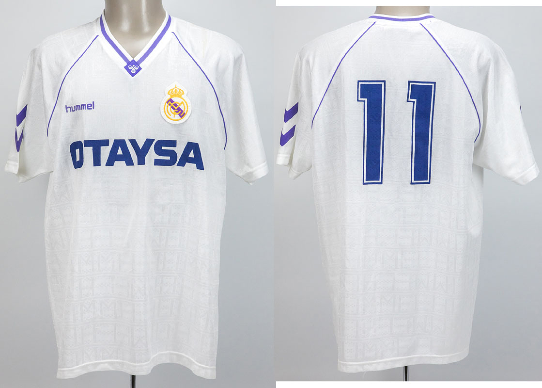 Original match-worn/issued shirt Real Madrid with the number 11. Worn in a 1990/1991 Primera Division match for Real Madrid. Status: ACC. --Short-sleeved jersey; size XL; embroidered club logo; embroidered hummel logo; 'otaysa' advertising print and back number flocked (wet flock); jersey comes from a collection and was offered through Classic Footballshirts. With COA from Classic Footballshirts. Condition: A