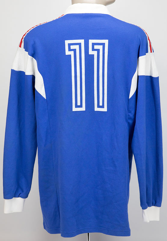 Original match-worn Yugoslavia shirt with the number 11. Worn by Savevski in the England vs. Yugoslavia 2-1 international match in London in December 1989. Swapped after the match with German and English international David Platt. Status: AAA. --Long-sleeved jersey; size approx. XL; embroidered federation logo; flocked adidas logo; flocked back number; Adidas Climalite 2000. Made in France. Jersey comes directly from the David Platt collection. Includes a certificate of authenticity from Classic Football Shirts. Condition: A-