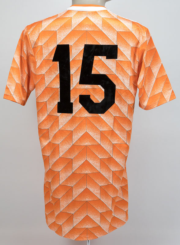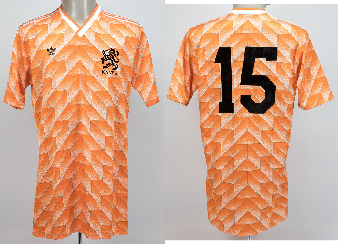 Original match-worn/issued shirt Netherlands. From the UEFA Euro 1988 semi-final, number 15. Worn by Wim Koevermans on the bench on June 21, 1988. Germany 1-2 Netherlands. Exchange shirt directly from the collection of German international Matthias Herget. Status: AAA. --Short-sleeved jersey; size 9/10; flocked federation logo; sewn-on back number; adidas. Matthias Herget was substituted in the 46th minute and swapped jerseys with Dutch reserve player Koevermans. Koevermans did not play during UEFA Euro 1988. Condition:
