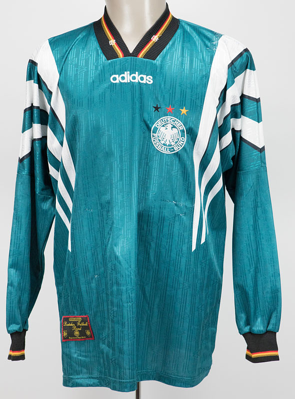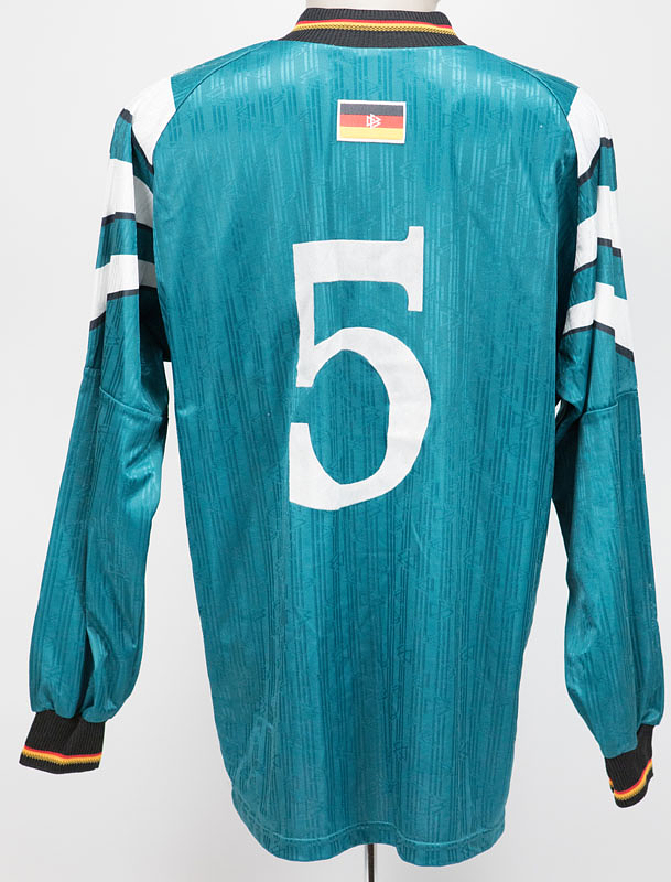 Match-worn shirt with the number 5 worn by Doris Fitschen (1968-2025) in the women's international match between England and Germany (4:6) on 27 February 1997 in Preston. Status: AAA --Long-sleeved; size L; embroidered DFB logo; embroidered Adidas lettering and three stars; thinly curled back number; embroidered German flag sewn on the back. Adidas. The consignor received this jersey directly from Doris Fitschen after the 1997 game. --with signs of the match Condition: A-