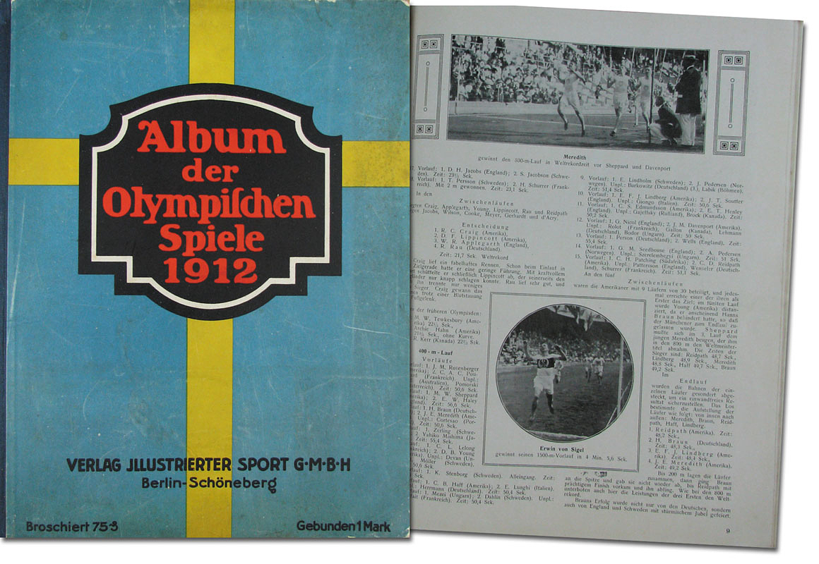 Olympic Games 1912. Rare German Report: Olympic Games 1912. Collector's Album with circa 80 b/w photos. (GERMAN). Size 23x30.5 cm, very rare album with 56 pages. Condition: C