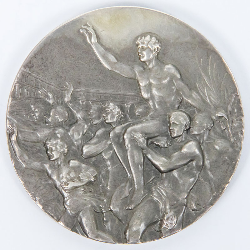 Silver medal for a 2nd place finish in basketball at the 1956 Melbourne Summer Olympics for the USSR. Silver, weight: 70 grams, 5 cm. In the original plastic box from the manufacturer: "K.G.Luke Ltd" 7.5x7.5 x2 cm --Original winner's medal from the 1956 Olympics. This medal comes from a private collection. The collector received this medal from a Soviet basketball player who won it in Melbourne in 1956. --Medal immaculate. Plastic box with a break on the front (4x1 cm; box condition: C). The manufacturer's label is missing from the box Condition: A-