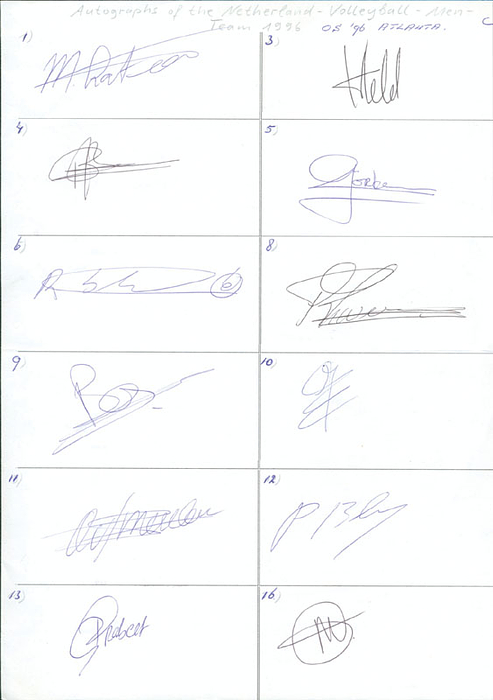 Olympic Games 1996 Autograph Volleyball Netherlands Condition: B