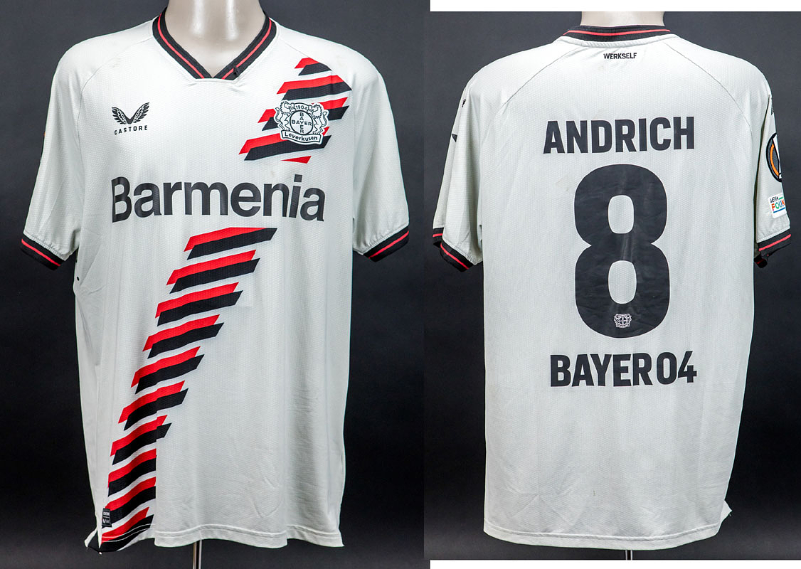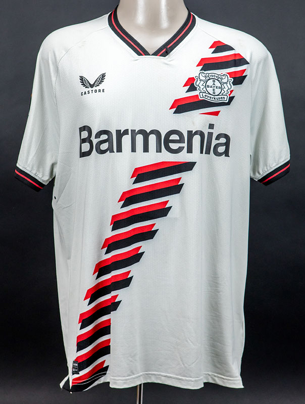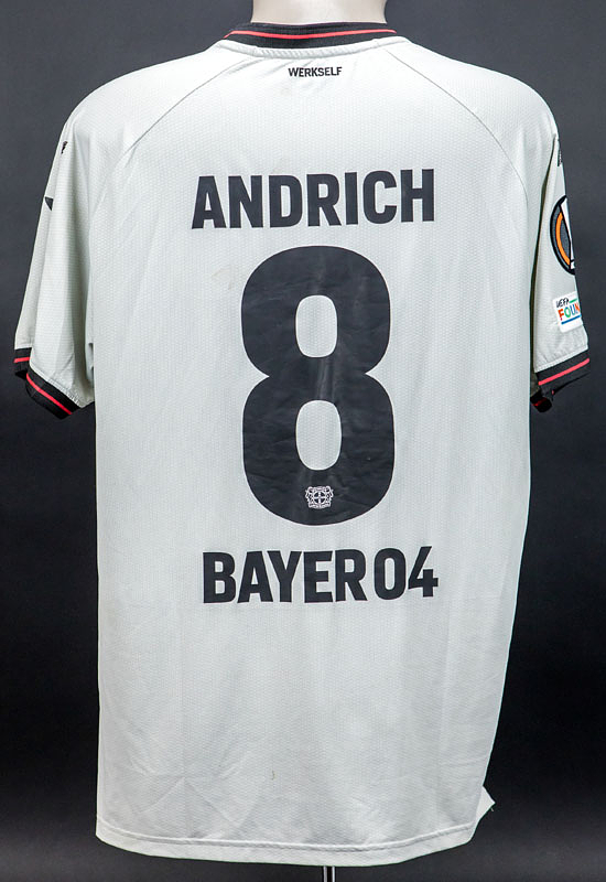 Sorry, no english description is available. ... Condition: A.....Auswärts-Trikot kurzarm; Größe XL; Vereins-Logo und Castore-Logo gummiert; Werbeaufdruck 'Barmenia' gummiert; Spielername, Rückennummer und Schriftzug 'Bayer04' gummiert; Schriftzug 'Werkself' auf Kragenrückseite gummiert; Lüftungslöcher gelasert (Laser Holes); mit Europa League Trophy Patch, UEFA Foundation for children Patch und trive Patch; Castore. --Trikot kommt direkt von einem Mitarbeiter von Bayer Leverkusen.