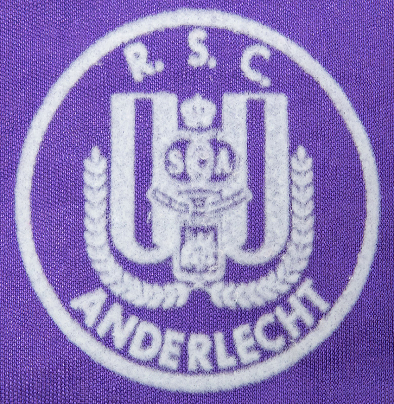 Original match-worn RSC Anderlecht shirt with the number 2. Worn by Adri van Tiggelen in a Europa League match for RSC Anderlecht between 1987 and 1990. With original COA from Classic Football Shirts. Status: AAA --Short-sleeved jersey; size L, flocked club logo and adidas logo; flocked advertising print 'G' and back number; adidas. Condition: A