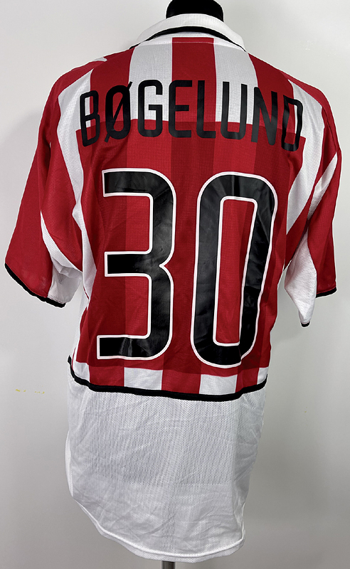 Original match-worn PSV Eindhoven player shirt with number 30, worn by Kasper Bögelund. Worn in a Champions League match during the 2003/2004 season. Status:ABB. Short-sleeved shirt; size L; sewn-on club emblem, Adidas manufacturer logo; flocked Champions League patch; rubber-embossed player number and name; sponsor 'Philips' embedded in jersey; Champions League patch; 100% polyester; Made in Romania; Condition A; Status ABA Condition: A