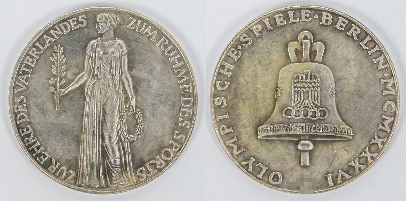Olympic Games 1936: Official commemorative medal Olympic Games 1936 in Berlin. Silver, 21,84 gramm. 3,7 cm. --not punched Condition: A-
