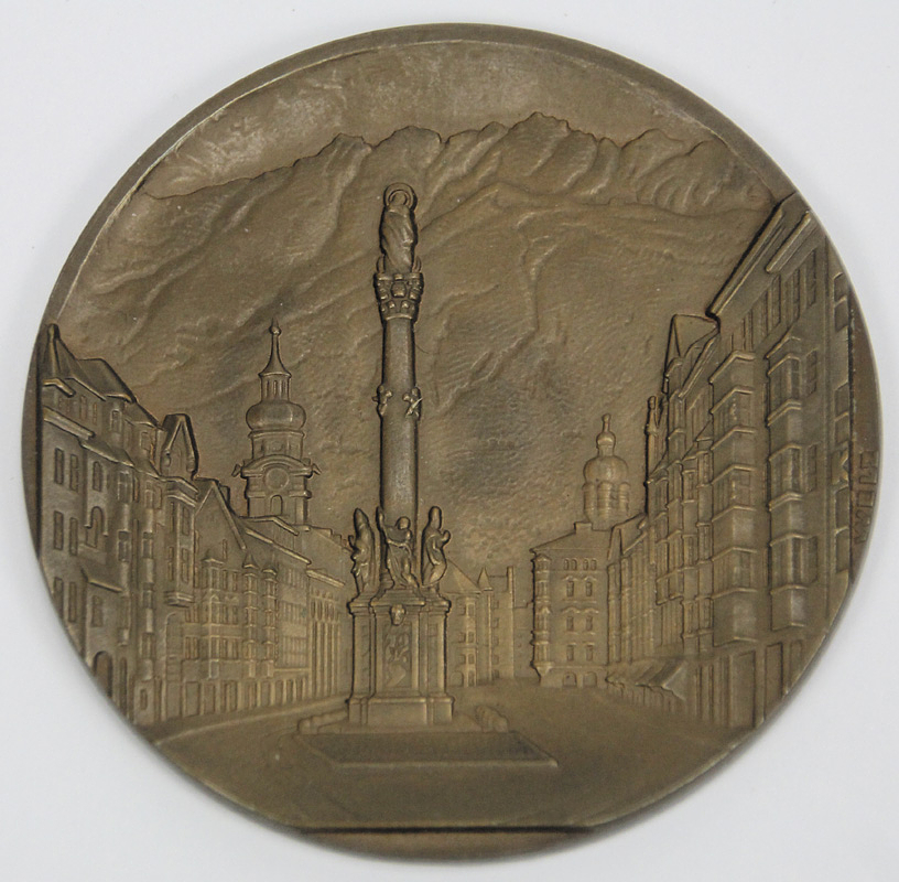 Olympic Winter Games 1964. Participation medal. Innsbruck 1964 in original red plastic case with Olympic emblem. Bronze, size 6.1cm. EF Condition: A