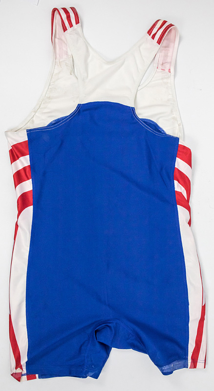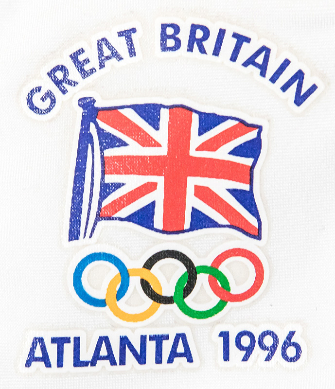Originally worn sprinter's bodysuit from the 1996 Olympic Games in Atlanta. Worn by John Regis in the semifinals of the 200m sprint (photo matched). Regis was eliminated. Regis won bronze in the 1982 4x100m relay and silver and gold medals in the 1988 and 200m World Championships in 1989. With original autograph and dedication by John Regis on the front. Status: AAC --Sprint bodysuit; rubberized adidas logo; rubberized lettering 'Great Britain Atlanta 1996', Union Jack, and Olympic rings; bodysuit shows signs of wear (adhesive residue on the inside of the legs to prevent the jersey from slipping); adidas. The consignor received this jersey directly from John Regis! Condition: A-