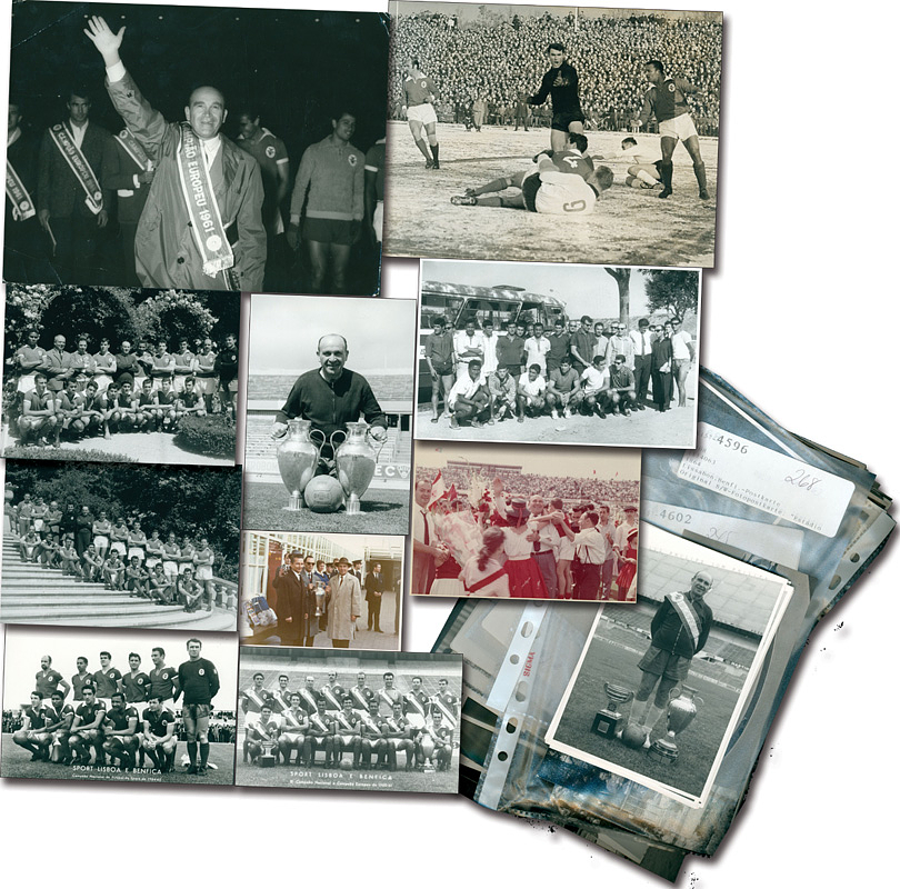 - 130 different original black and white press photos and postcards from Benfica and Bela Guttmann, dating from 1959-1962. Sizes: 8x12 to 18x24 cm. - Guttmann Estate 2001, Nos. 144, 227, 239, 245-247, 249, 253, 269 + parts of 252 --The photos show the team, coaches, and private scenes. They include two complete photo series from shoots in 1961. Condition: A-B