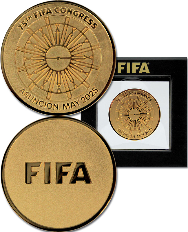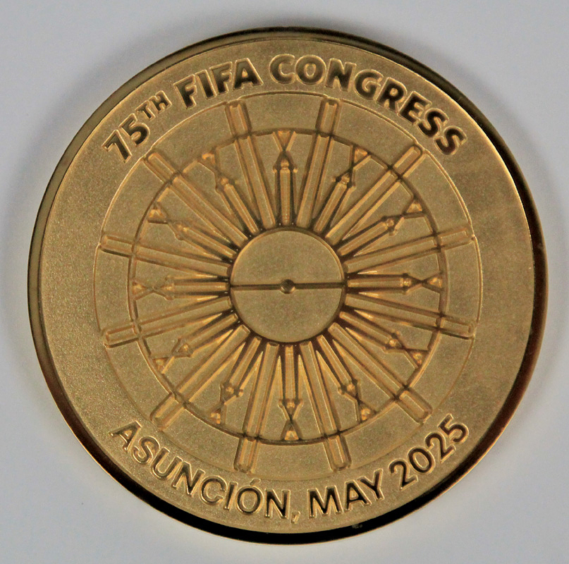 FIFA Congress 2025 Asucion Participation medal - Gold-plated commemorative medal for the 75th FIFA Congress, Asunción, May 2025. 5 cm. In original case. Condition: A
