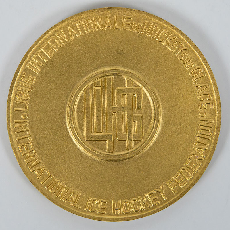 - Gold medal from the 1961 Ice Hockey World Championships with the inscription "Championnat du Monde. World Championship 1961"" Awarded to the players of Canada for the world championship title. Manufacturer: "G.Berad". Bronze, gold-plated, 6 cm --Approximately 35 medals were issued. Excellent (EF). -- From the collection of a former Swiss ice hockey club president, who collected these medals between approximately 1964 and 1980. --some small scratches on the rim Condition: A-