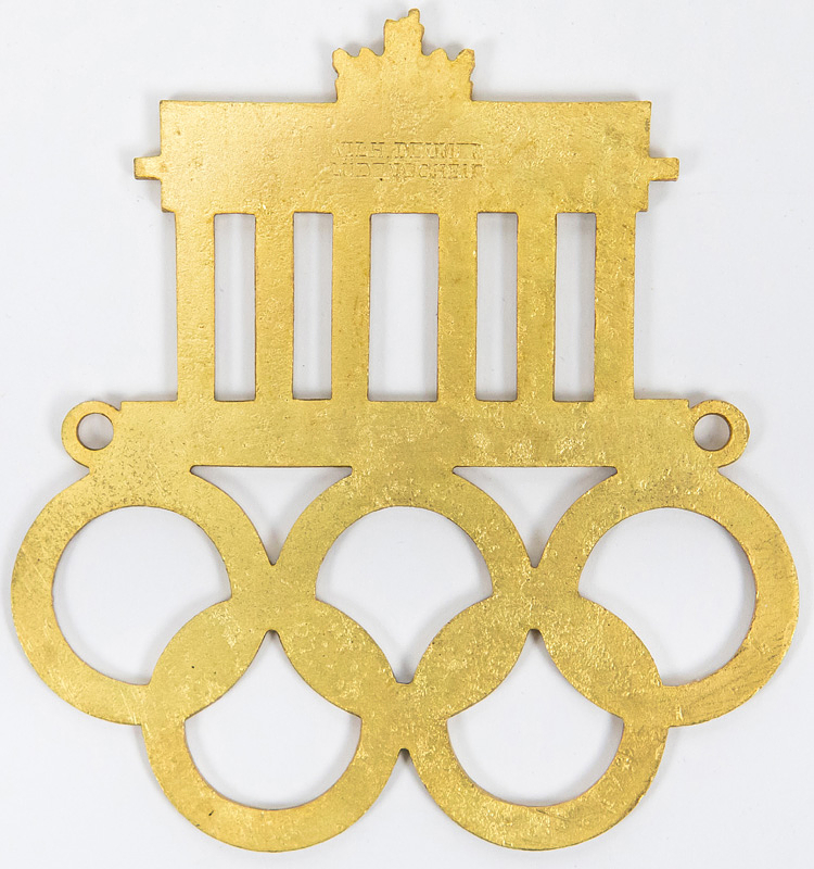 - Olympic games 1936. Car Plaque Berlin 1936: "XI.Olympiade Berlin 1936“ Brandenburger Gate. Bronze, gilt with white enamelling. With manufacturer's mark. 7.5x7.2 cm. --Please note: These plaques are only authentic if they bear the manufacturer's hallmark! Otherwise, they are Polish or Romanian replicas offered online. Condition: A