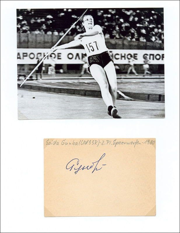 Sorry, no english description is available. ... Olympic Games 1984 Autograph Athletics USSR - Condition: A-.....Dabei S/W-Reprofoto beides mit Fotoecken aufmontiert auf DIN A4 Sammlerblatt