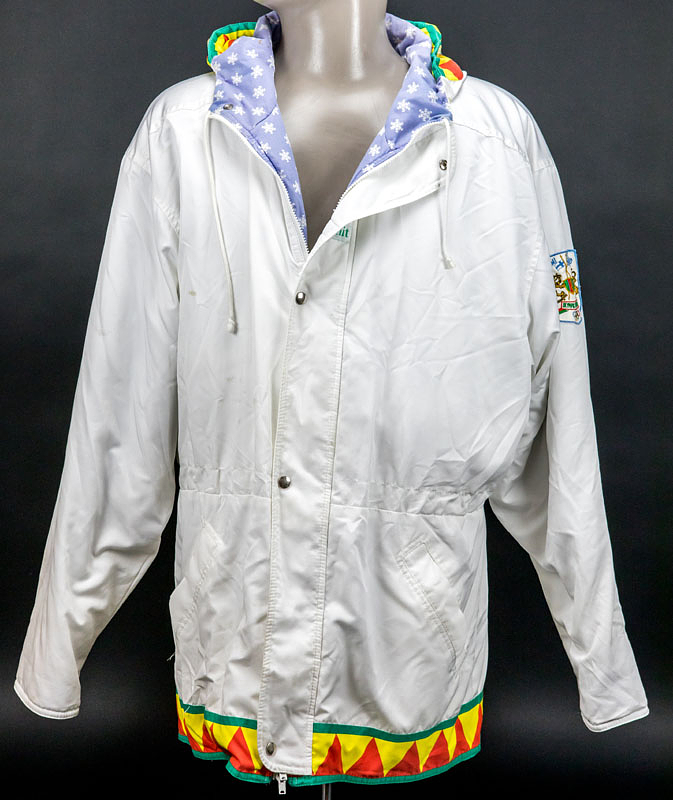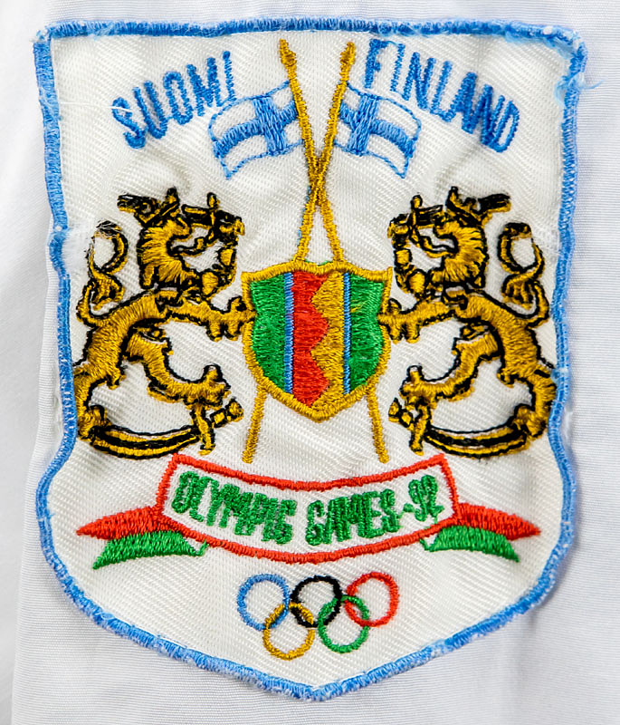 Olympic Games 1992 worn IOC Jacket - Originally worn winter jacket from the 1992 Olympic Games in Albertville, exclusively for IOC members! Worn by Peter Julius Tallberg as an official for the IOC. Peter Julius Tallberg competed in sailing for Finland at the 1964 to 1980 Olympic Games. From 1976 to 2015, he was a member of the International Olympic Committee (IOC) and, among other roles, presented medals to the athletes. Status: AAA --This jacket in this design was produced exclusively for IOC members! Long-sleeved jacket with zipper, snap fasteners, and hood; size approx. L; with federation logo patch; jacket with 2 outside pockets and 1 inside pocket with zipper; large embroidered Finnish/Suomi federation logo on the back; jacket has signs of wear (stains); manufacturer: Terinit. The jacket comes directly from the Tallberg collection. Condition: A-