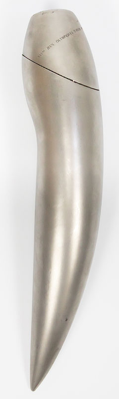 Olympic Games Albertville 1992 Official Torch - Original torch of the Olympic Games in Albertville. Matted steel with engraved inscription "XVIe Jeux Olympiques d´Hiver 1992" and Olympic Rings. Engraved number "090:100" (there was a limited edition of 100 copies). 44 cm. Was used in the torch relay. Extraordinary design of French designer Philippe Starck. One of the rarest torches. With minor trace of usage; burner with fire traces from the relay. Condition: A-