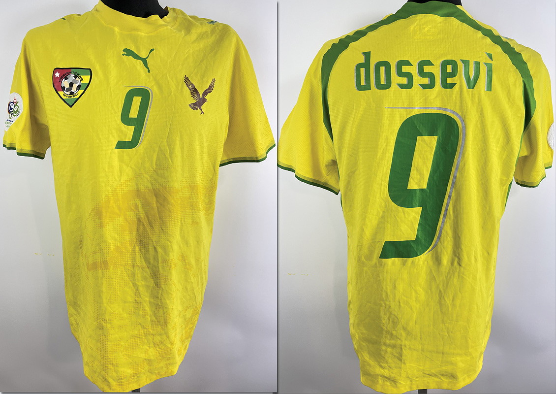 - Original match-issued Togo player shirt with number 9. Prepared for Thomas Dossevi for a match at the 2006 World Cup in Germany. The set consists of a jersey and shorts. Status ABC Short-sleeved shirt; size L; club emblem, Puma manufacturer logo glued on; rubberized player number and name; flocked 2006 World Cup patch; 100% polyester; Made in Thailand. Condition: A