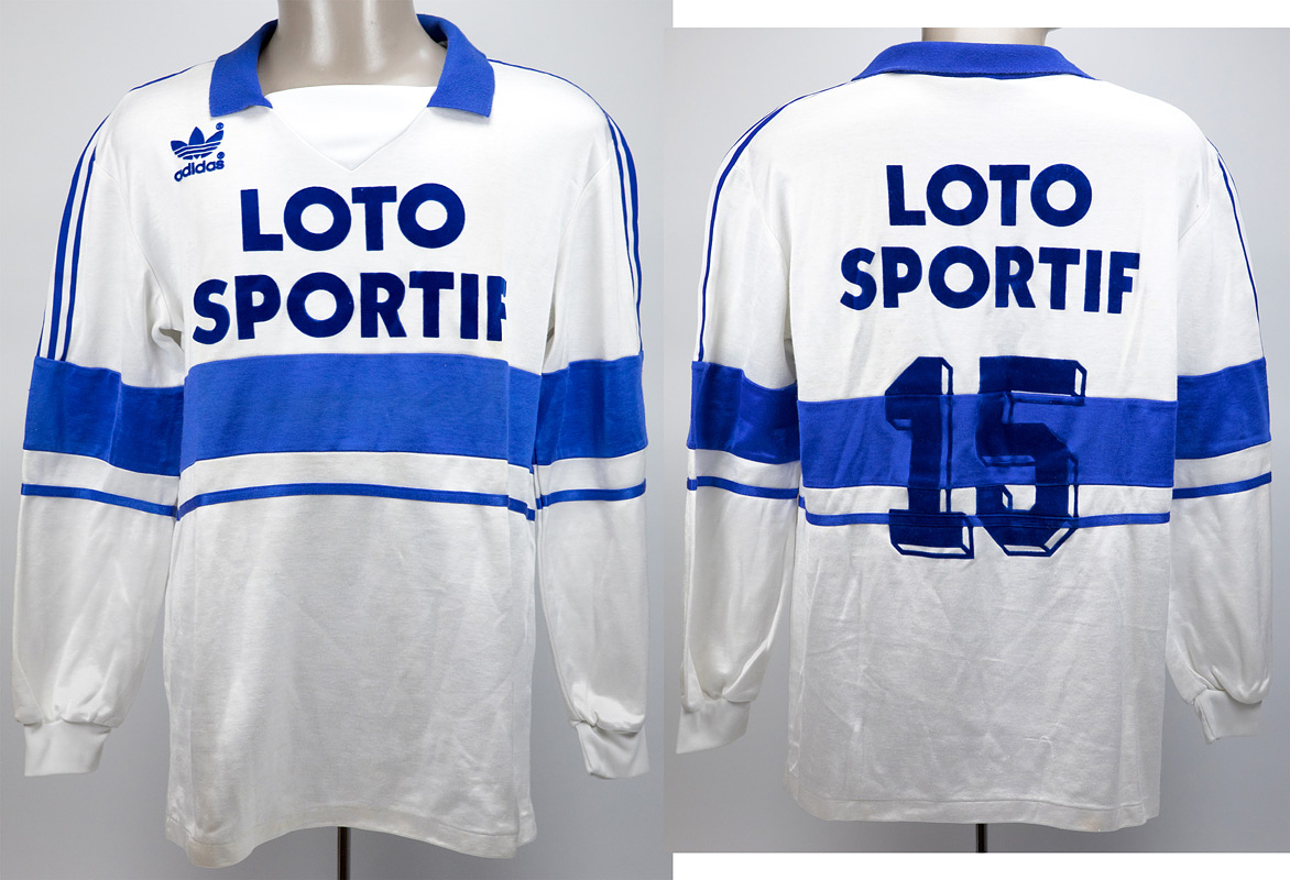- Original match-worn Olympique Marseille player shirt with the number 15. Worn in the 1988/1989 season. Status: ABA. --Long-sleeved jersey; size 6/7; Adidas logo, sponsor, and back number flocked; Adidas. One pulled thread in the lower back area; minor signs of storage. The consignor received this directly from a German national player who played for Olympique in the 1988/89 season. Condition: A-