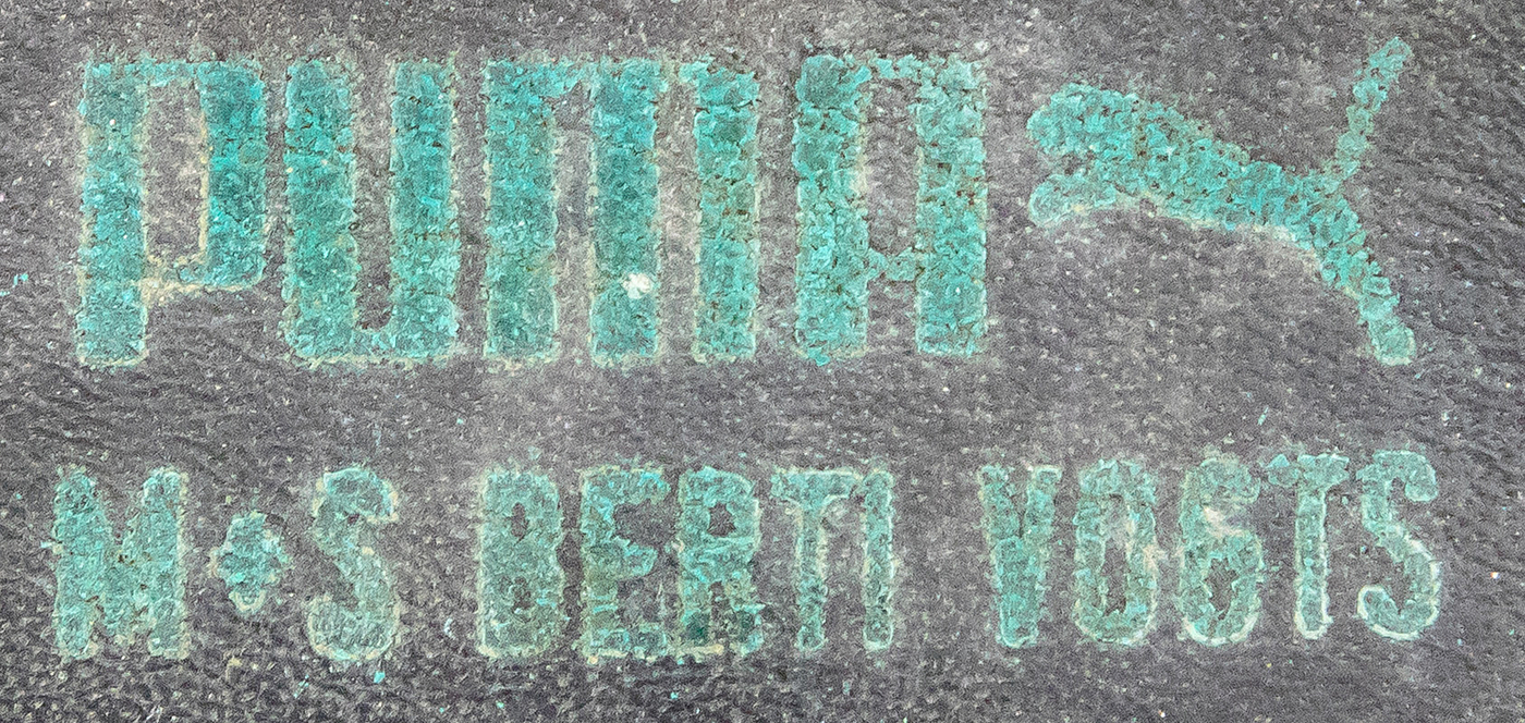 - Original Puma indoor football boots worn by Werner Weist for Werder Bremen from 1976-78. "Puma M+S Berti Vogts" size 8. Leather upper, synthetic sole. Status: ACA --The football boots come directly from the collection of Werner Weist (1949-2019) - Borussia Dortmund 1968-1971 (72/34), Werder Bremen 1971-1977 (145/33), Stuttgarter Kickers (1977-1978; 10/1); 3x DFB U-23 1970 + 1971). The buyer receives a certificate of authenticity and confirmation from the Weist family regarding the provenance of the items. Condition: A-