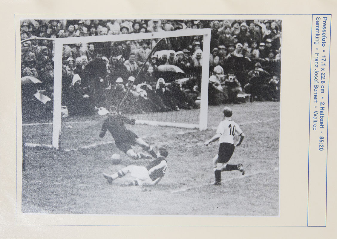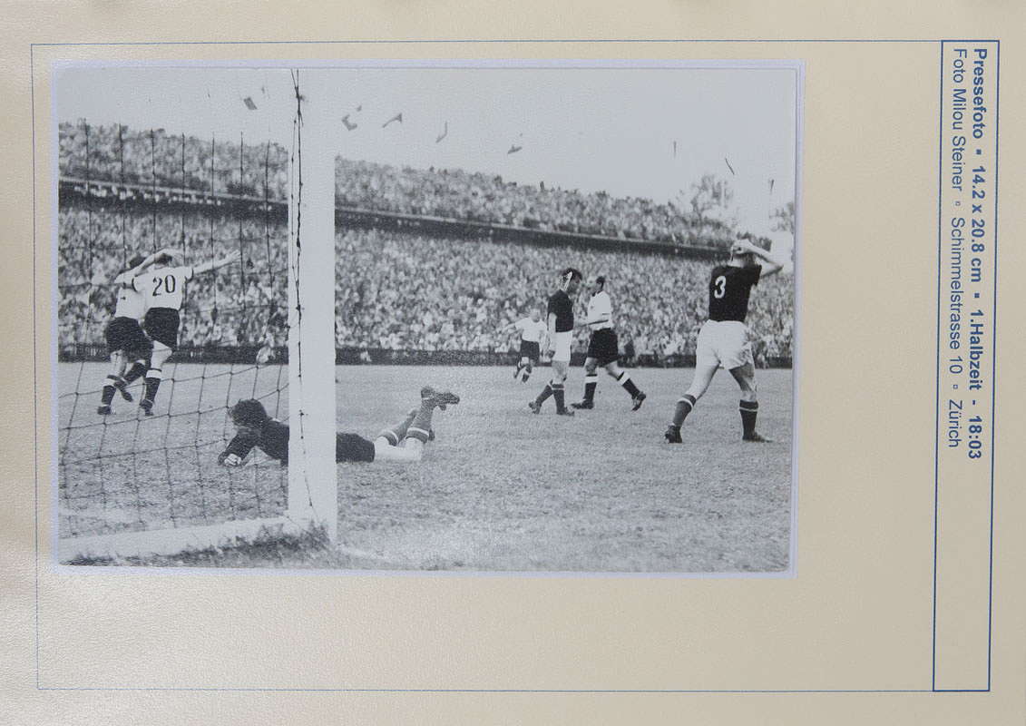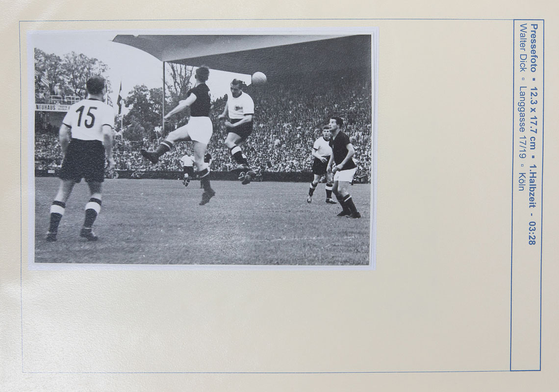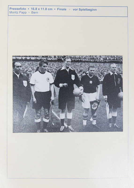 Sorry, no english description is available. ... - Condition: A-.....Beim durchblättern durch diese Dokumentation läuft vor dem Auge des Betrachters der Spielfilm dieses Endspieles ab!!! Alle Fotos wurden sauber jeweils auf einen Archivkarton montiert (können alle leicht abgelöst werden). Auf der Vorderseite jeweils ein kurzer beschreibender Text zu jedem Foto mit der entsprechenden Spielminute und dem Fotografen bzw. Bildagentur. 1.Halbzeit 38 Fotos, 2.Halbzeit 43 Fotos. Alle Fotos in zwei Ordner. In dieser Form einmalige Dokumentation zum Endspiel der Fußball - Weltmeisterschaft 1954!!!.