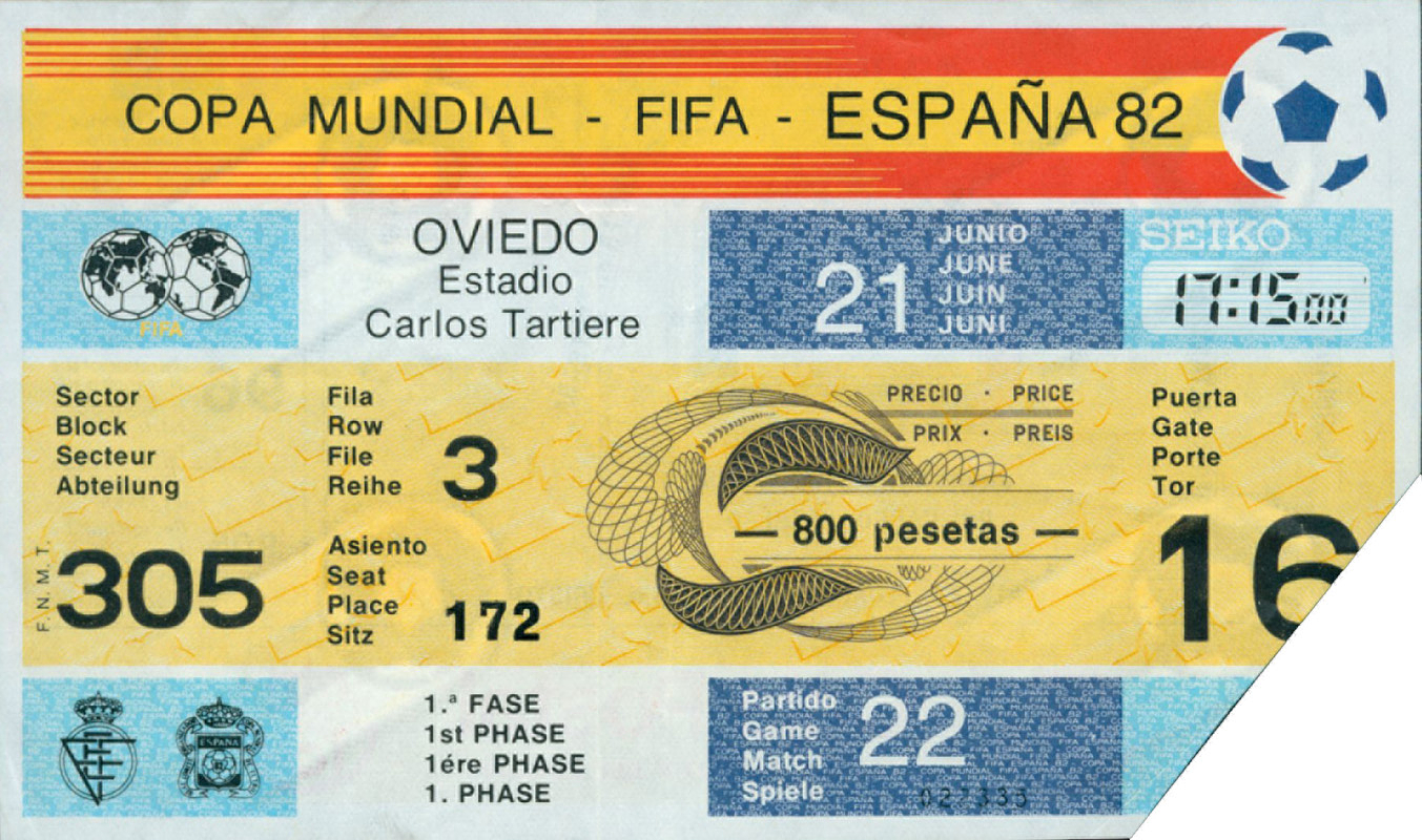- Ticket World Cup 1982 Austria v Algeira (2-0) Copa Mundial. 21st june 1982 in Oviedo, size 15x9cm. Condition: C+