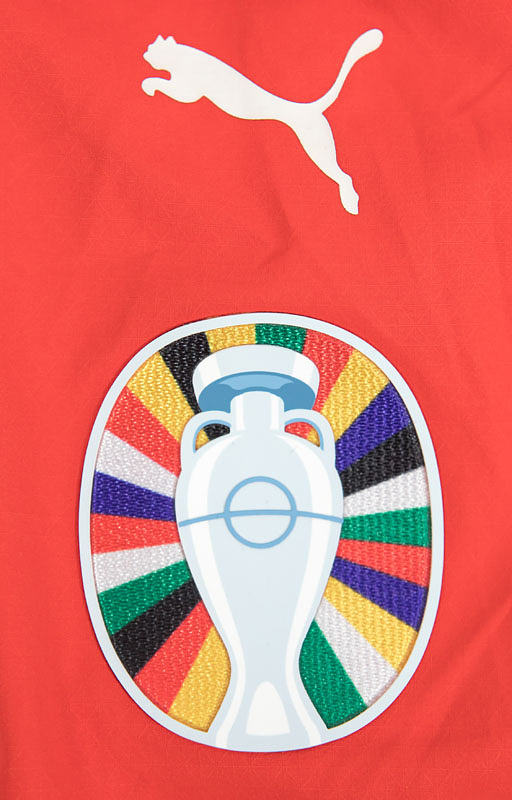 UEFA Euro 2024 match issued fb. shirt Switzerland - Original match-worn Switzerland shirt with the number 2. Assisted by Leonidas Sterigiou in a European Football Championship group match against Germany on June 23, 2024. Switzerland - Germany 1:1. Status: AAB --Short-sleeved jersey; size M; partly with welded seams; rubberized federation logo, match details, and Puma logos; rubberized player name and number (front and back); jersey with UEFA Euro 2024 Trophy patch and UEFA Foundation for Children patch; Puma ultraweave. This jersey comes from a DFB staff member, who received it after the match. Condition: A